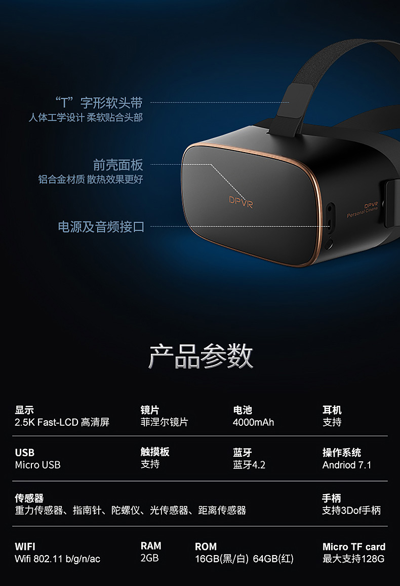 大朋VR P1 VR一体机4K高清vr电影AI天猫精灵语音控制3D眼镜虚拟现实全景视频 vr体感游戏VR眼镜